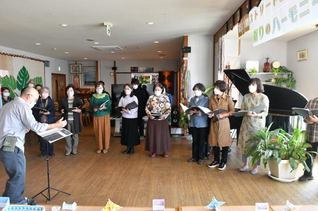 新型コロナウイルスの感染予防の観点から、今年は参加人数を制限して実施された。参加者らはマスクを着用したまま合唱した。