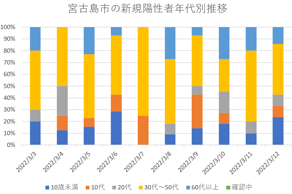 【速報・新型コロナ】12日、宮古島市の新規陽性者年代別内訳