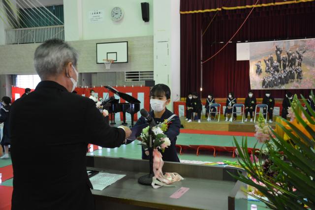卒業式シーズン。12日は二つの中学校で卒業式が行われ、3年間慣れ親しんだ学びやを巣立った。13日は9校で行われる。