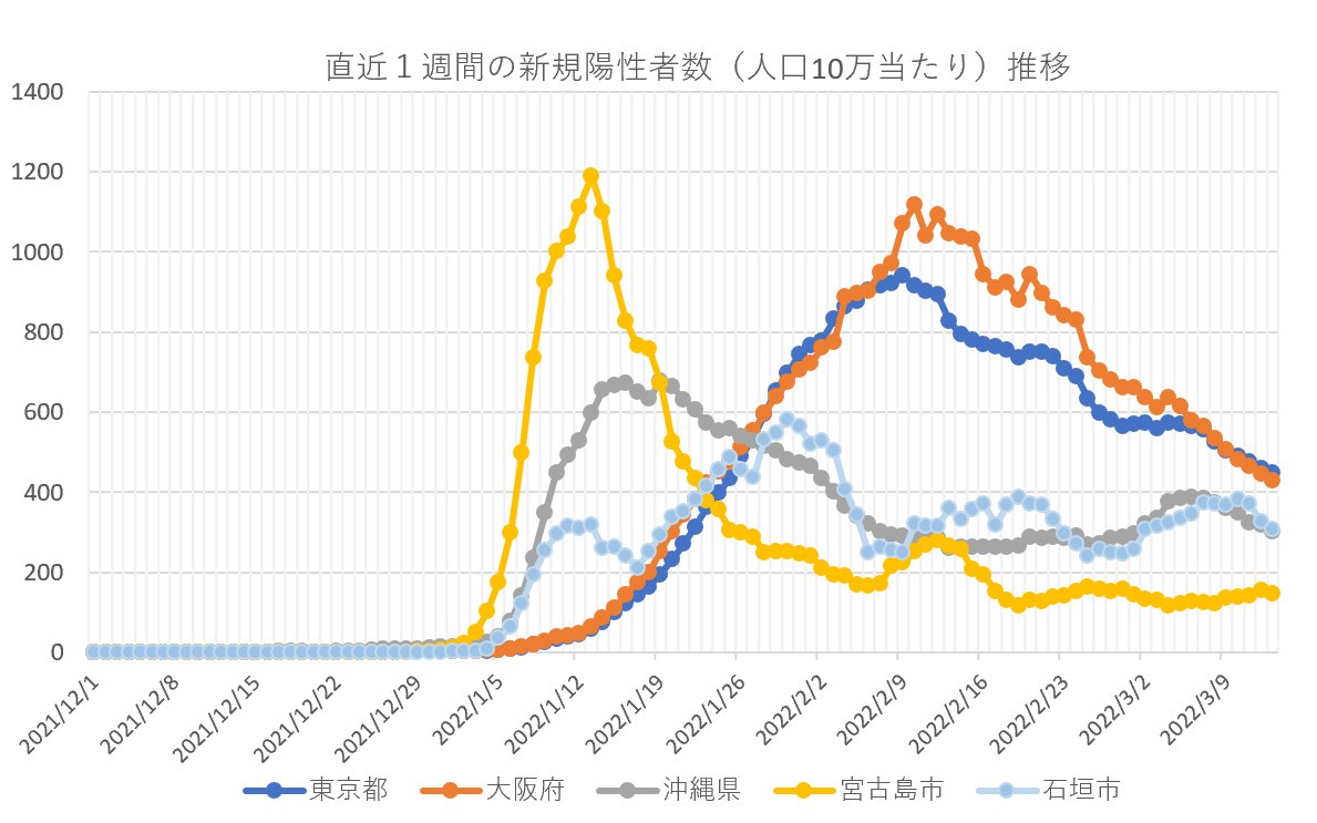 【速報・新型コロナ】13日、直近1週間の新規陽性者(人口10万人当たり)