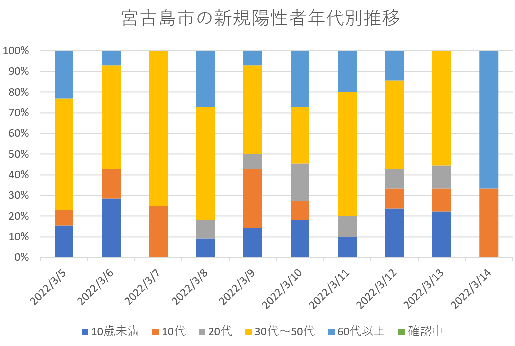 【速報・新型コロナ】14日、宮古島市の新規陽性者年代別・職業別内訳