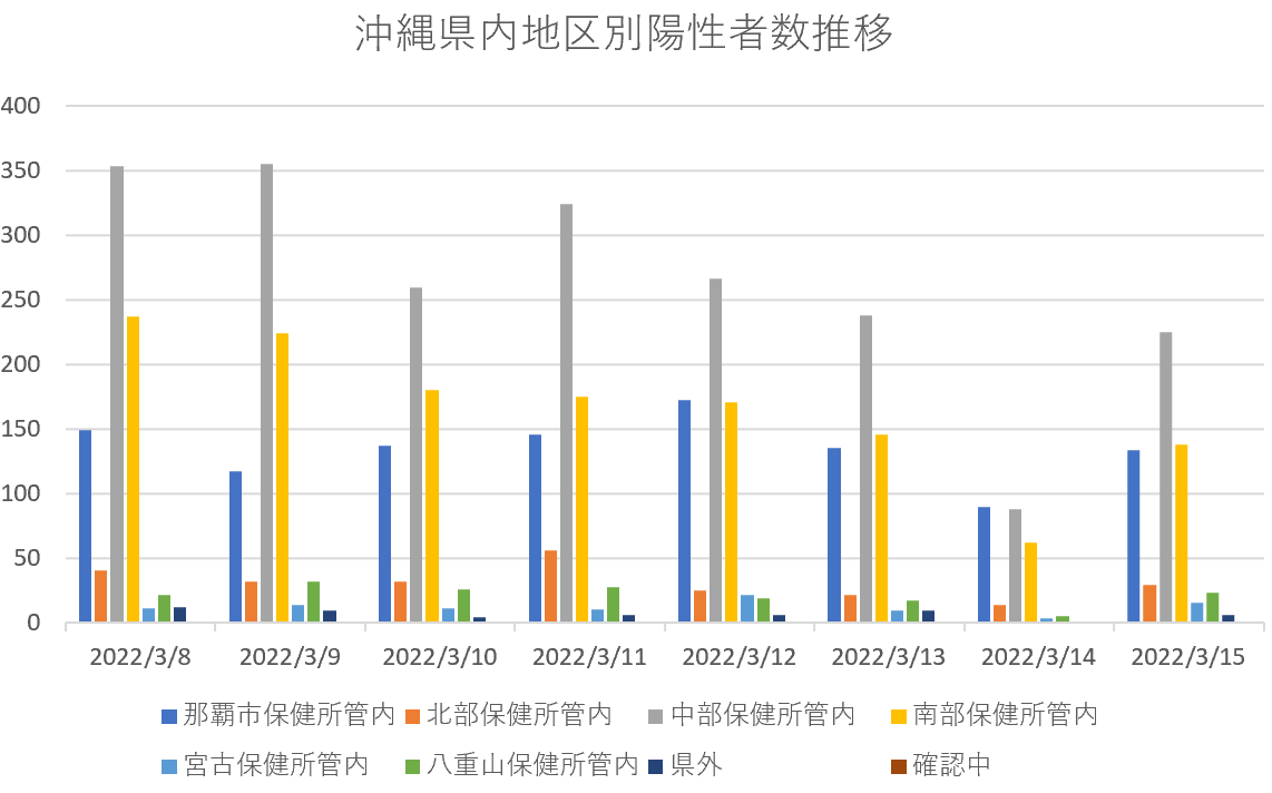 【速報・新型コロナ】15日、沖縄県内の新規陽性者居住地別内訳