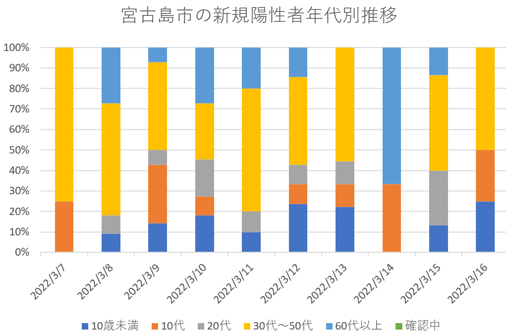 【速報・新型コロナ】16日、宮古島市の新規陽性者年代別内訳