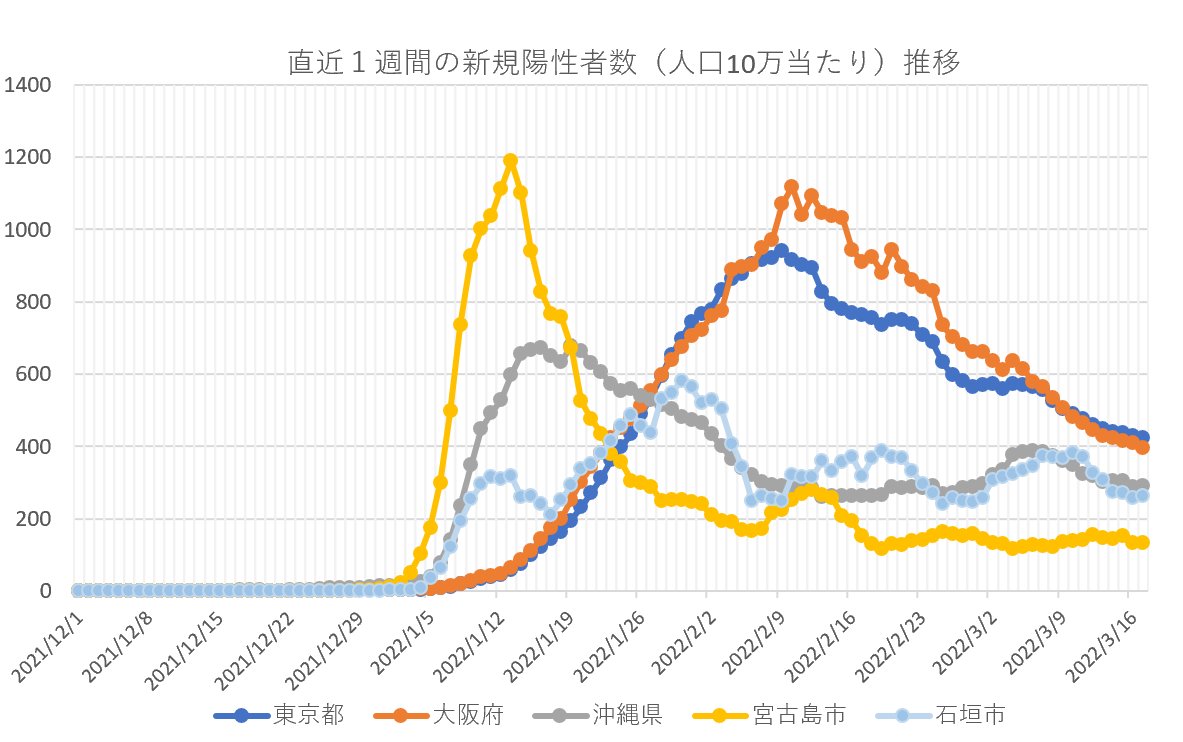 【速報・新型コロナ】17日、直近1週間の新規陽性者(人口10万人当たり)