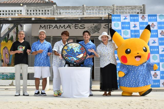 ポケットモンスターのキャラクターが描かれたマンホール「ポケふた」が19日、海びらきが行われた下地の与那覇前浜ビーチでお披露目された。アニメキャラクターの「ピカチュウ」と、県出身バンド「HY」が参加して、華やかに除幕した。多くの家族連れが集まり設置を喜んだ。