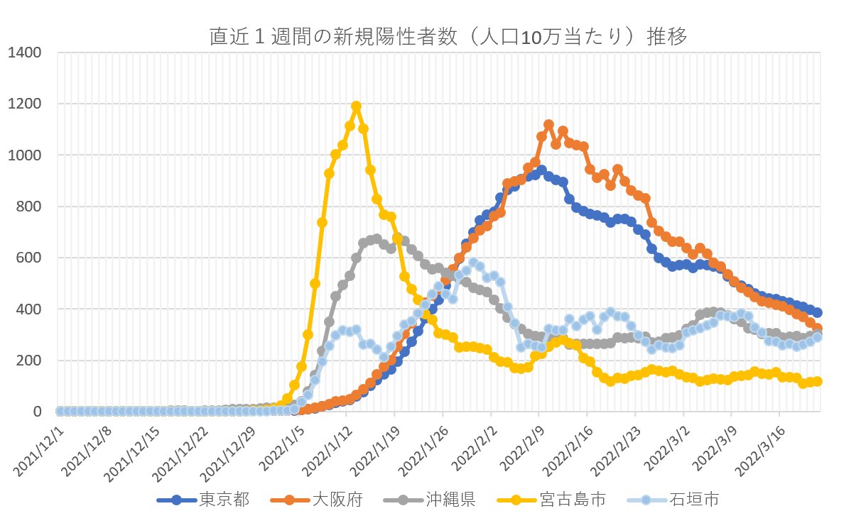 【速報・新型コロナ】21日、直近1週間の新規陽性者(人口10万人当たり)