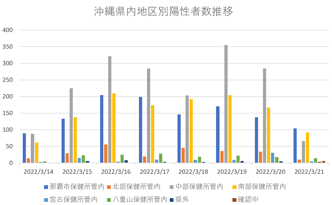 【速報・新型コロナ】21日、沖縄県内の新規陽性者居住地別内訳