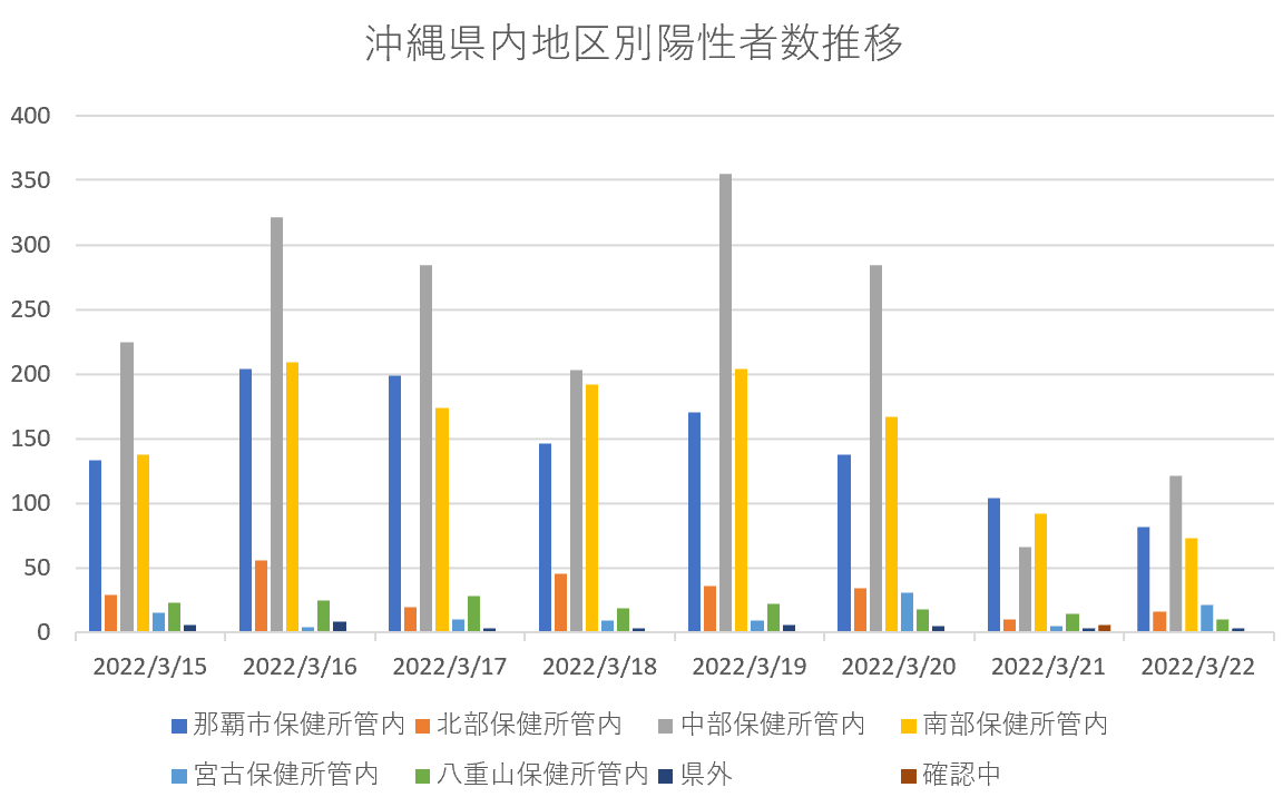 【速報・新型コロナ】22日、沖縄県内の新規陽性者居住地別内訳