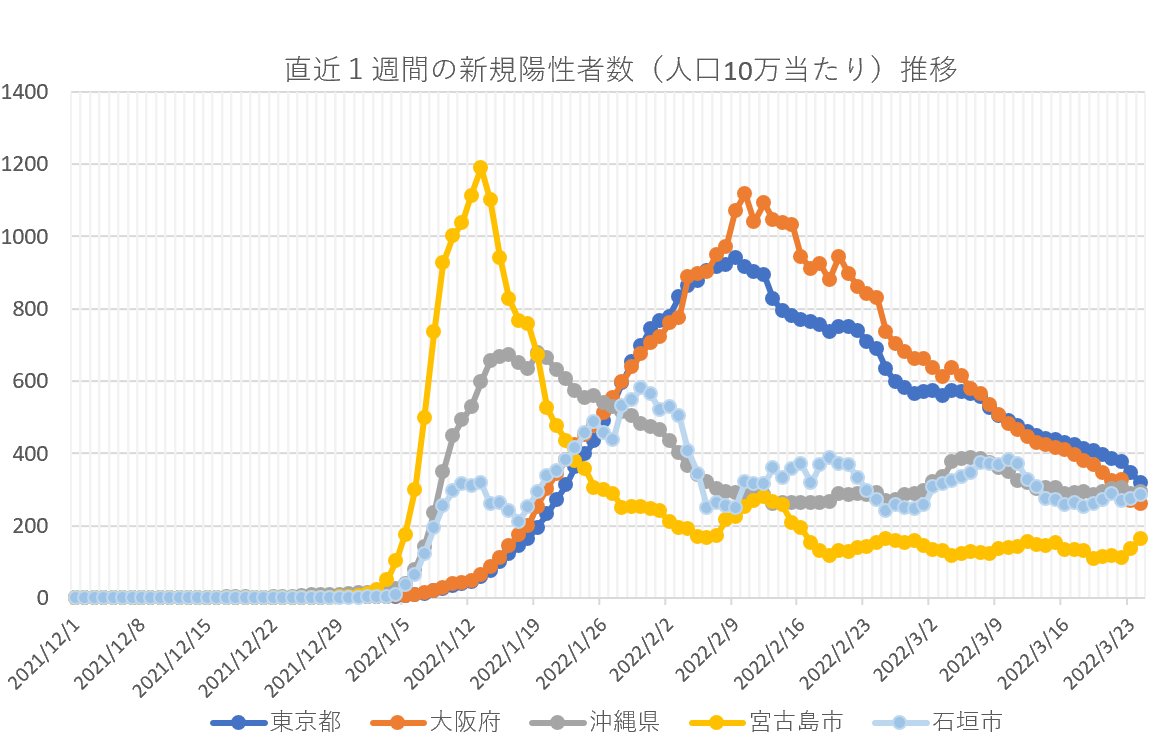 【速報・新型コロナ】24日、直近1週間の新規陽性者(人口10万人当たり)