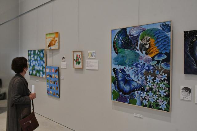 宮古高校美術部(仲里優衣部長)の作品展「彩」が25日から市未来創造センターの2階ギャラリーで開催されている。