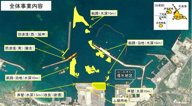 沖縄総合事務局はこのほど、2022年度の開発建設部所管予算と主要事業の概要を発表した。総事業費は前年度比3・9%減の約1044億円で、宮古関係では港湾事業として、いずれも継続事業となる平良港漲水地区複合一貫輸送ターミナル改良事業に17億円、平良港本港地区防波堤整備事業に6億5000万円の計23億5000万円が計上されている。