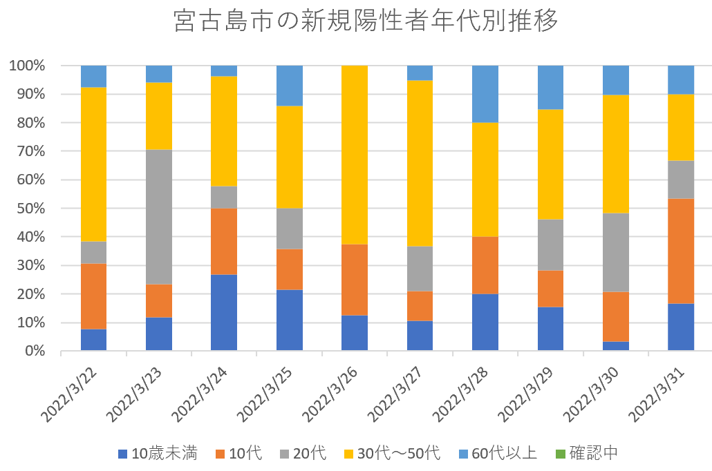 宮古島市の新規陽性者年代別内訳