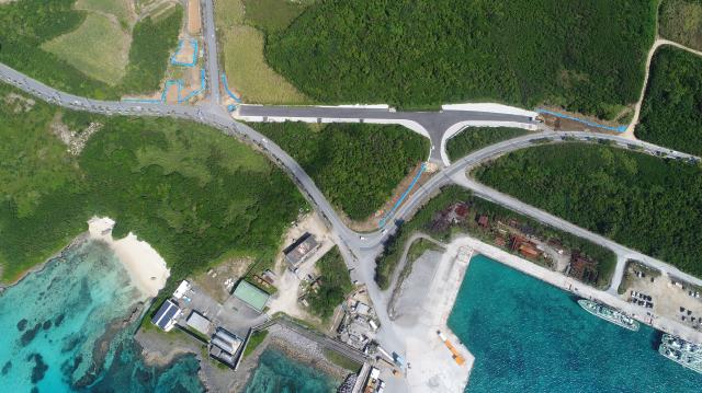 伊良部池間添の長山港入り口前の急カーブを回避する平良下地島空港線の改良工事で、4月から新道路との接続部工事が実施される。県宮古土木事務所によると、内陸部に直線化するための新道路がすでに整備されており、現道路と接続する3カ所の工事が行われる。工期は10月7日まで。
