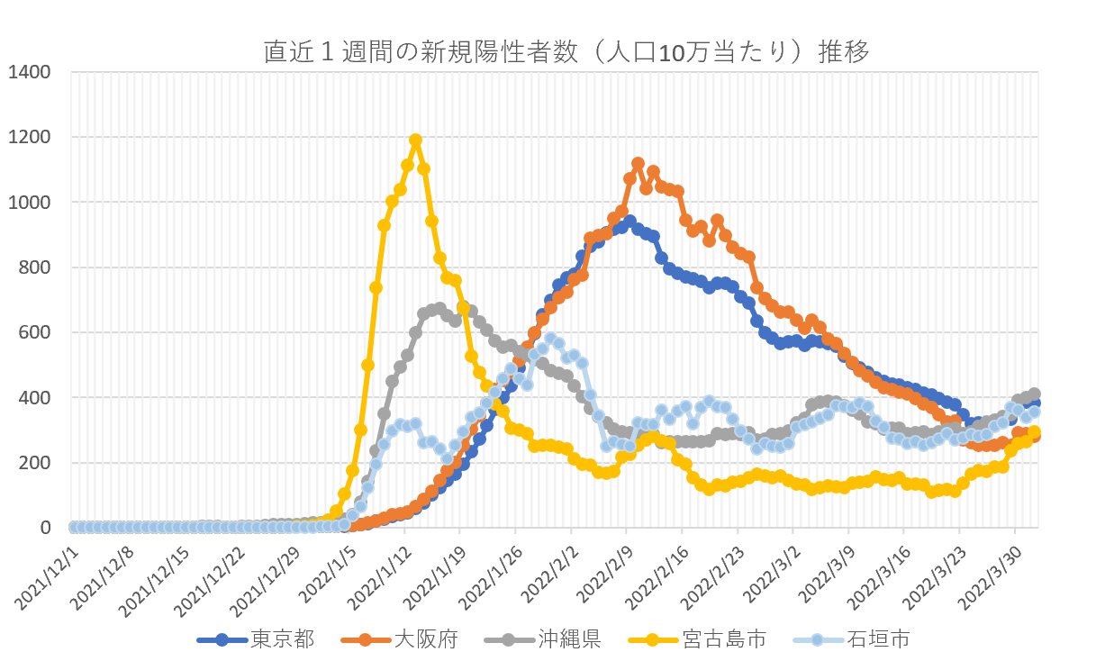 【速報・新型コロナ】1日、直近1週間の新規陽性者(人口10万人当たり)