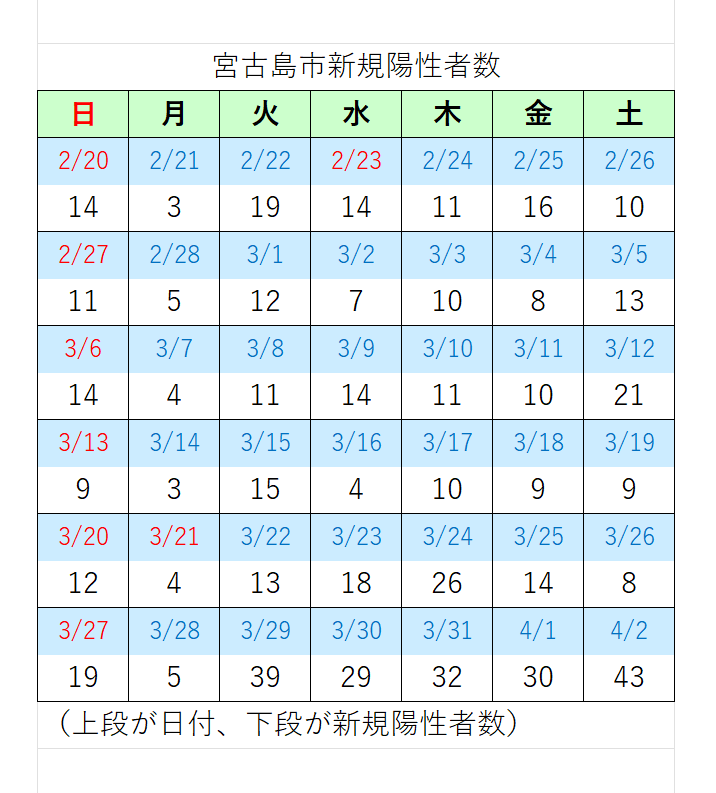 【速報・新型コロナ】2日、宮古島市の新規陽性43人、多良間村0人(速報値)