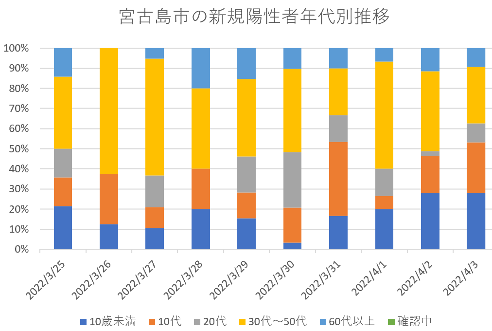【速報・新型コロナ】3日、宮古島市の新規陽性者年代・職業別内訳