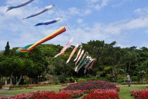 市みどり推進課は5日、子供たちの健やかな成長を願い、市熱帯植物園にこいのぼりを掲揚した。吹き流しも含めて15匹のこいのぼりが大空を泳ぎ、訪れた市民の目を楽しませている。掲揚はゴールデンウイークまで。