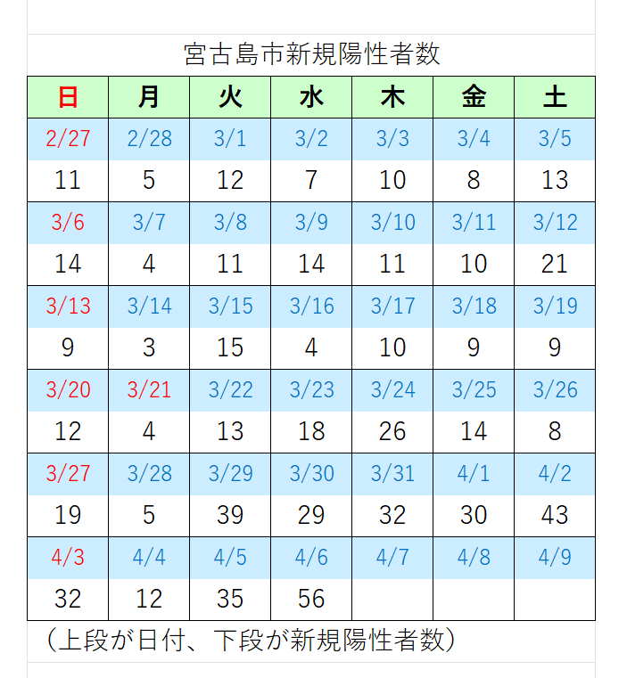 【速報・新型コロナ】6日、宮古島市の新規陽性56人、多良間村0人(速報値)、