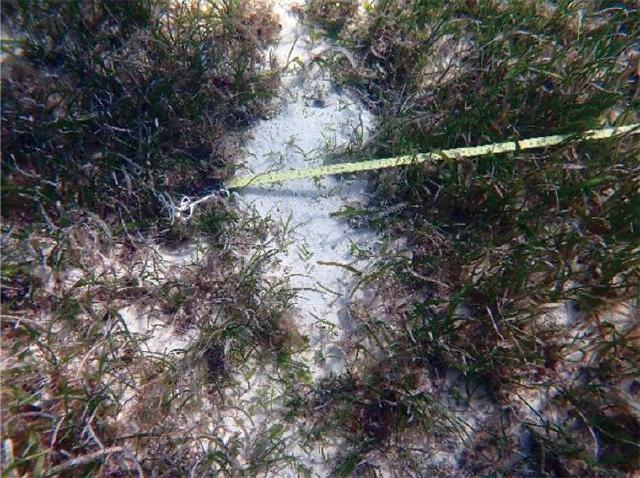 調査結果では、宮古の調査箇所すべてでジュゴンの喰み跡が確認された。さらに、確認された喰み跡すべてにおいて、その特徴である海草類の地下茎が露出していることを確認。地上部のみを食べるアオウミガメのものとは明確に異なることが確認されたとしている。