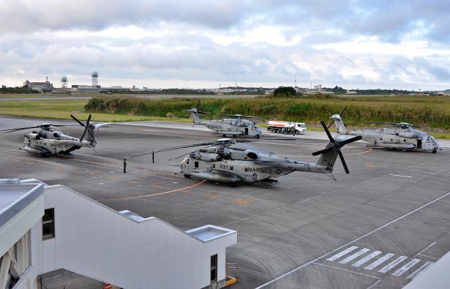 米軍普天間飛行場所属のCH-53ヘリ4機が10日午後4時30分ごろ、給油を理由に宮古空港に緊急着陸した。4機はフィリピンから普天間飛行場に向かう途中で、給油するため着陸した。