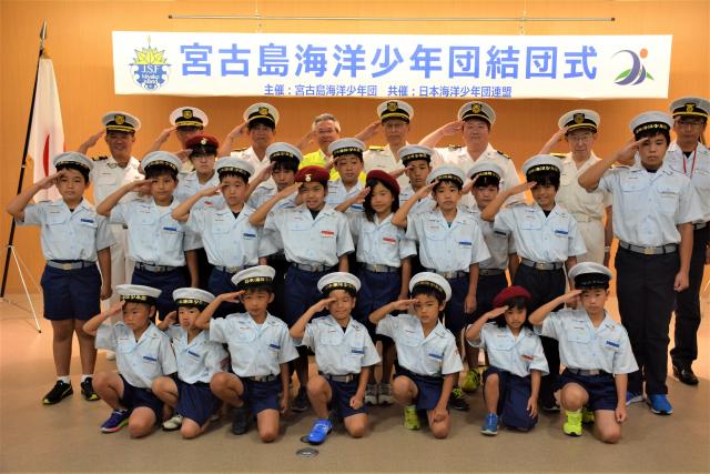 宮古島海洋少年団結団式が10日、市役所で行われた。結団式には中尾忠筰団長や小学生から中学生までの20人が参加し、大きな声で団員としての決意を示した。結団式は当初、1月に予定されていたが、新型コロナウイルス感染拡大を受けて延期となった。その間、ヨットの基本操艇海上訓練などの活動を行ってきて、この日の結団式をもって正式にスタートした。