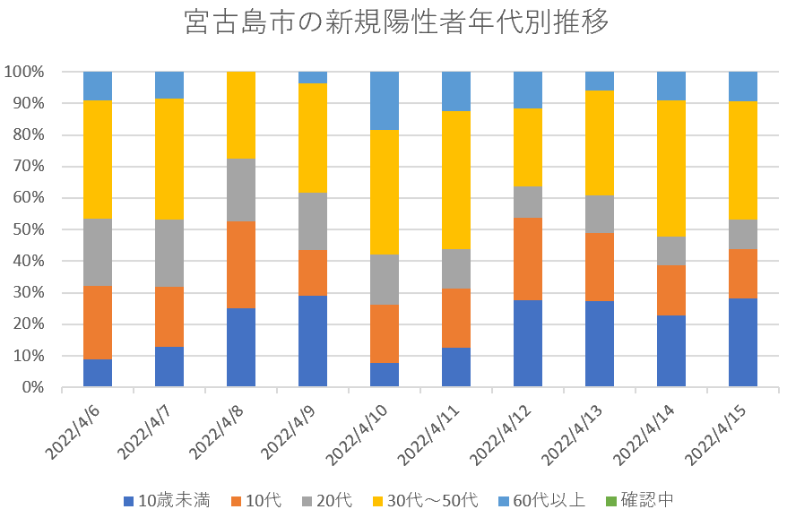 宮古島市の新規陽性者年代別内訳