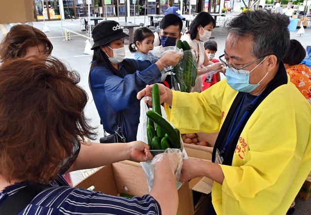 興味津々の様子で多良間村のブースを見入っていた60代の男性は「多良間にはいろいろな農産物があることにビックリした。特にニンニクは大きくておいしそうなので購入した。これから家に帰ってどんな料理にしようか考えるよ」と笑顔になった。
