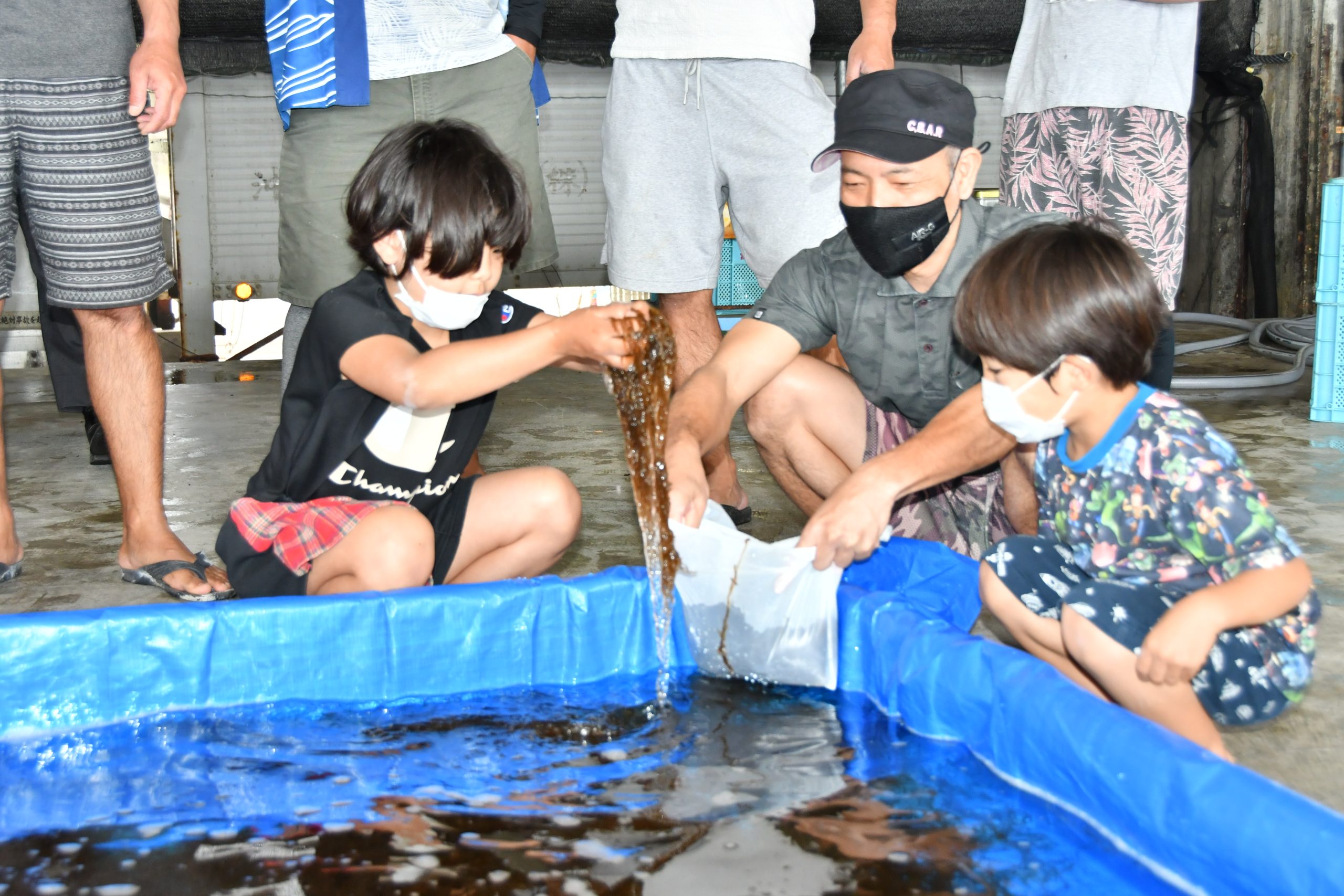 モズクをつかみ取り/漁協青年部がイベント