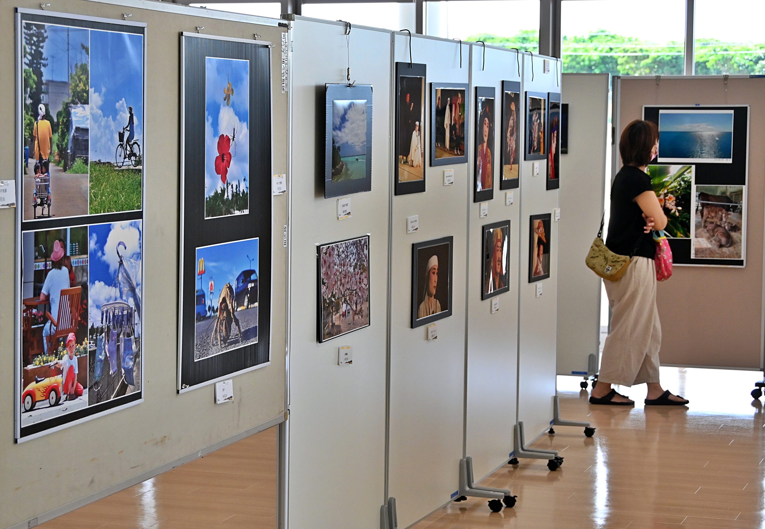 宮古写真協会(與那覇昇会長)の写真展が18日から市役所1階ロビーで始まった。22日まで。