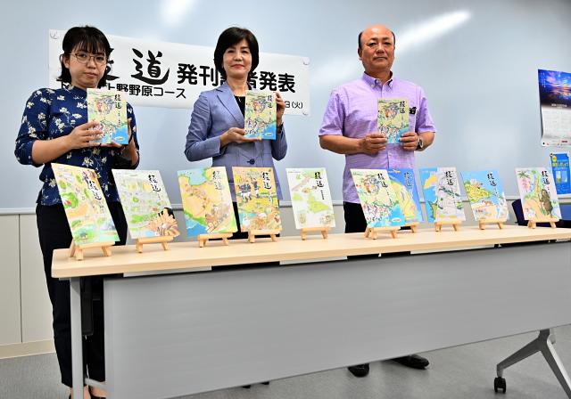 市教育委員会(大城裕子教育長)は19日、市役所で会見を開き「綾道(あやんつ)-下地南・上野野原コース」を発刊したことを発表した。「綾道」はガイド冊子で、宮古の歴史を歩きながら巡ることができる。今回で10冊目で、市内全域を網羅したことになる。大城教育長は「イラストや写真を多用し、分かりやすい内容になっているので、島内外の多くの人が手にとって活用してほしい」と呼び掛けた。