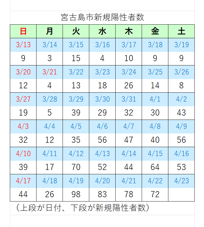【速報・新型コロナ】22日 宮古島市の新規陽性72人、多良間村0人(速報値)