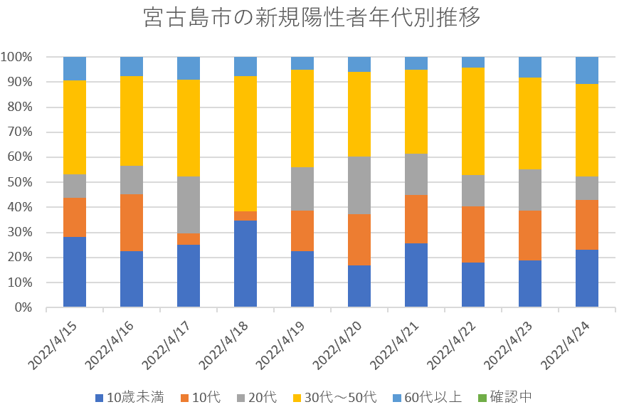 宮古島市の新規陽性者年代別内訳