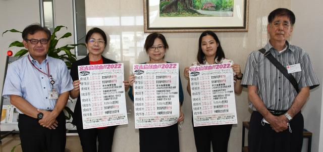 県赤十字血液センター献血推進課の玉城友香さんらが26日、宮古毎日新聞社を訪れ、2022年度5月期の宮古地区移動献血が5月16日から始まることを報告し、広く市民に協力を呼び掛けた。