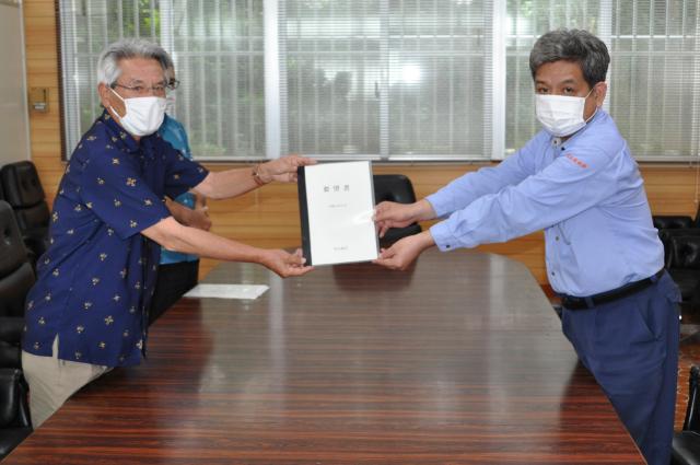 加えて「予算確保のため中央とのパイプづくりに業界と連携して取り組んでほしい」と求めた。座喜味市長は「連携して市民のために取り組みたい」と応じた。
