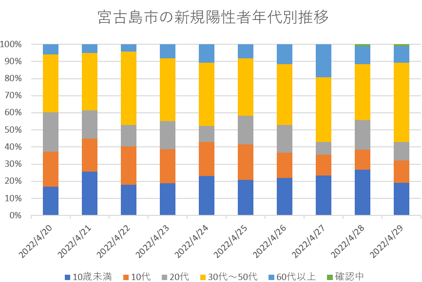宮古島市の新規陽性者年代別内訳