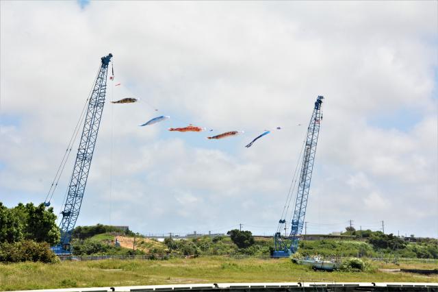 広栄開発(仲村智幸社長)は29日、久松漁港に大型クレーンを掲揚台にして、長さ10メートルのジャンボこいのぼりを設置した。同社営業部の平良直樹部長は同所で「子供たちの健やかな成長を願い、こいのぼりを掲揚した。ドライブがてらに訪れて楽しんでほしい」と呼び掛けた。ゴールデンウイーク期間中の8日まで。