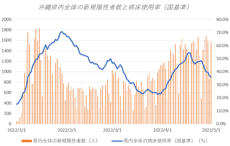 ☆関連記事 沖縄県内の地区別陽性者数推移(2022/5/1配信)