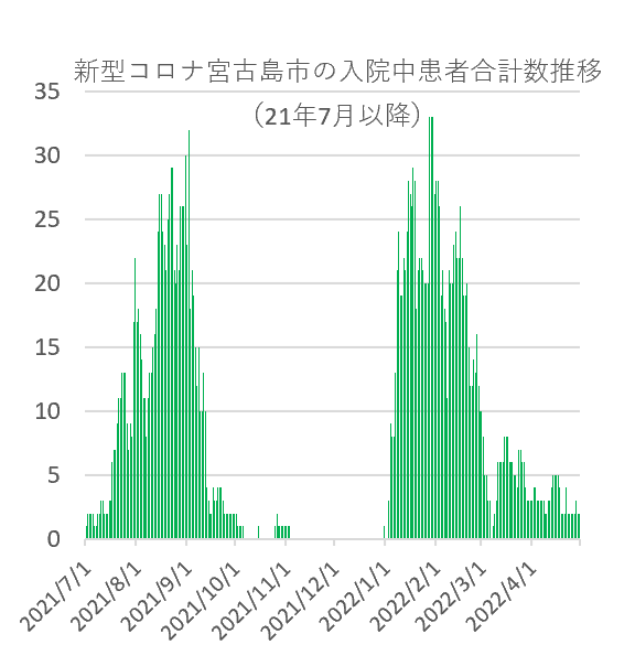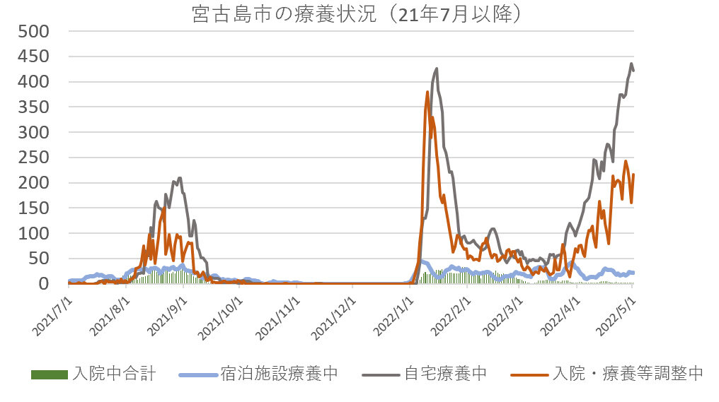 一方、宮古地区で入院中のコロナ陽性者は、宮古病院入の3人(中等症3)にとどまる。そのほか、宿泊施設療養中 22人、自宅療養中 422人、 入院・療養等調整中 217人となった。
