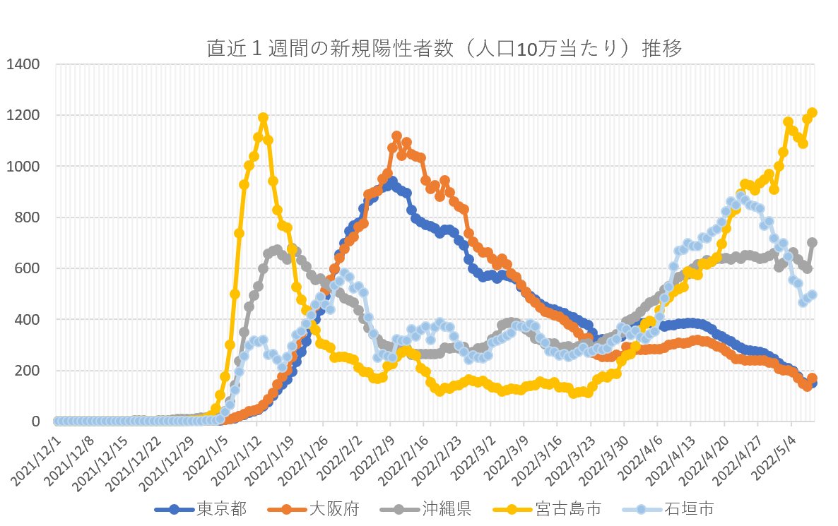 市内の直近1週間の新規陽性者数(人口10万人当たり)は1208.24人と、全国ワーストの県全体(699.34人)を大幅に上回る状況が続いている。