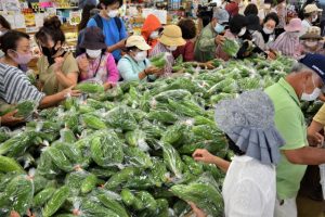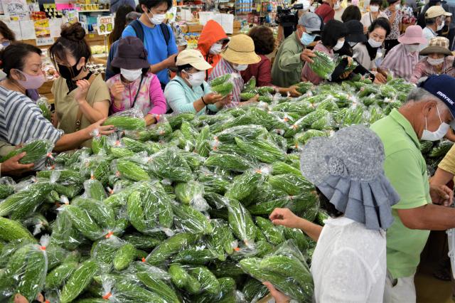 会場を訪れた女性(60代)は「ゴーヤーは家族みんな大好きで、普段からよく食べる。購入したゴーヤーはチャンプルーとジュースにしていただく予定」と話した。