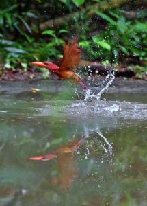 10日から16日までは「愛鳥週間」。宮古島では色鮮やかな鳥たちが島を彩る季節を迎えた。夏鳥の代表格アカショウビンが「キョロロロロー」と市内の雑木林でさえずり、水浴びをする風景が観察に訪れた人たちの目を楽しませている。