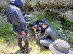 【多良間】琉球大学の新城竜一教授らがこのほど、村内15カ所の自然井戸などを調査した。新城教授は「多良間島は一つの淡水レンズの島。その上で人が生活している。一体化した状態で貴重な水資源。淡水レンズの質や量、構造を自然科学的に調べたい」と話した。