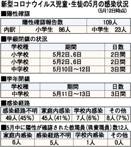 児童生徒陽性者は109人/5月12日時点コロナ感染状況