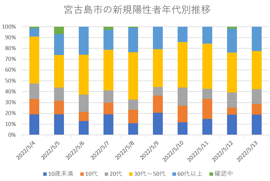 宮古島市の新規陽性者年代別内訳