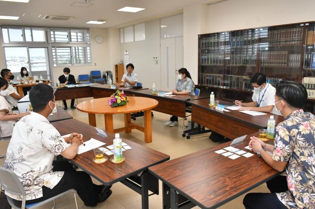 参加したのは、宮古木工芸の与儀昌樹さん、住宅情報センターの友利海斗さん、うむやすみゃあす・ん診療所の渡眞利邦子さん、沖縄銀行宮古支店の島袋拓也さん、JAおきなわ宮古地区青壮年部の宮平浩幸さん、宮古島来間リゾートシーウッドホテルの久高鈴さん、佐平建設の大嶺太亮さん。