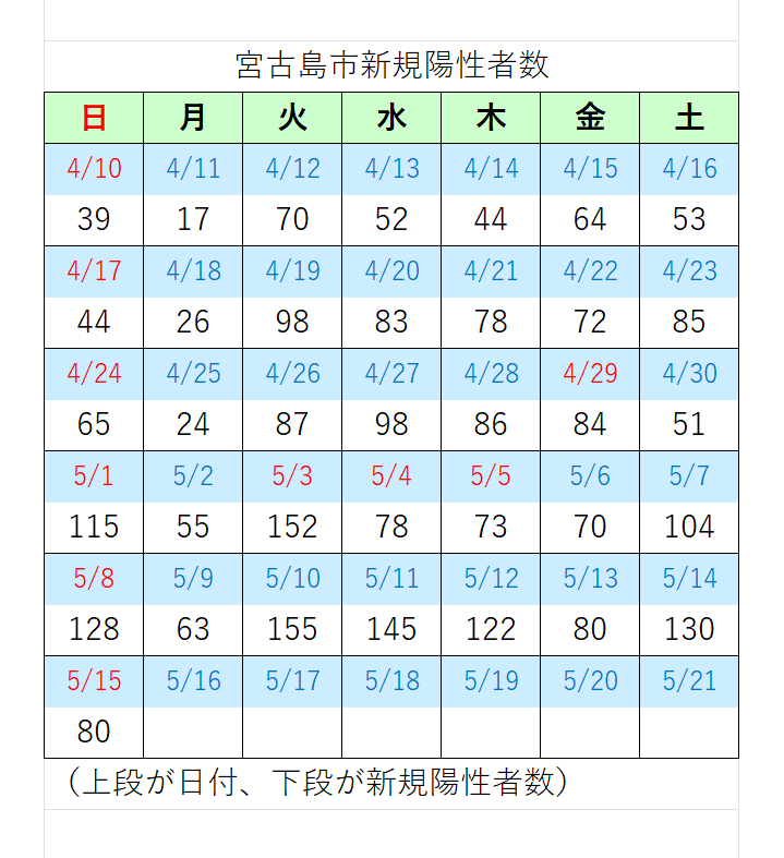 【新型コロナ】15日 宮古島市の新規陽性80人、多良間村2人(速報値)