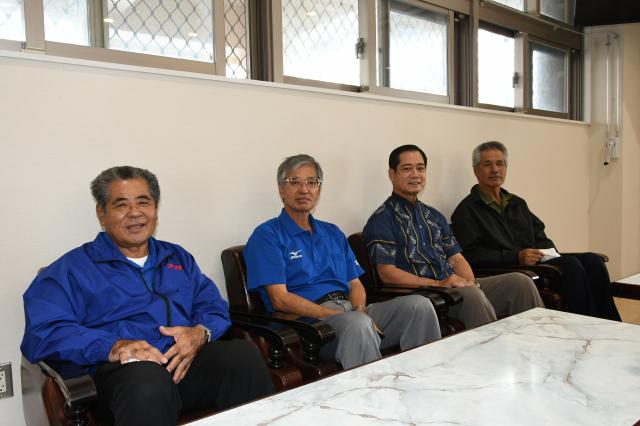 4月に就任した宮古島市陸上競技協会の平良進会長ら新役員が17日、宮古毎日新聞社を訪れ、2022年度の役員体制と行事計画を報告。来年度、県民体育大会の陸上競技が宮古島で開催されることを紹介し、同大会に向け競技力向上を目指したい考えを示した。