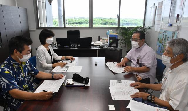 東大生講座in伊良部島実行委員会(伊計高秋実行委員長)は19日、市役所に大城裕子教育長を表敬訪問し、同講座の内容を説明した。7月31日~8月5日までの6日間、東京大学の学生4人が来島して伊良部島小中学校の児童生徒約60人を指導する。