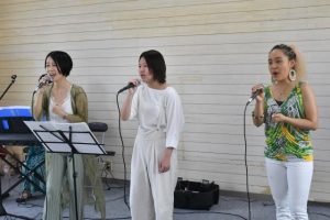「ニーリの旅プロジェクト」による「島ん巡りてぃ投げ銭ライブ」が22日、城辺福里のイベントスペースで開催された。ボーカル3人が個性あふれる歌声で集まった市民を魅了した。