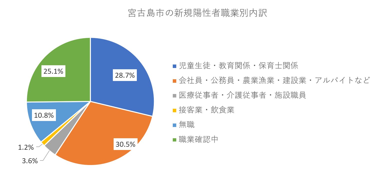 【速報・新型コロナ】25日 宮古島市の新規陽性者年代、職業別内訳